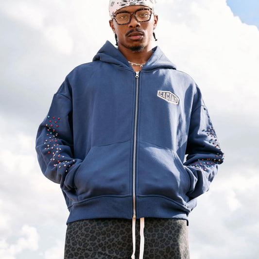 AZVA Navy Crystal Cactus Zip Hoodie