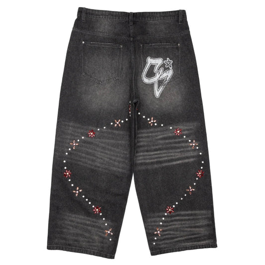 AZVA Flower Crystal Denim Pants