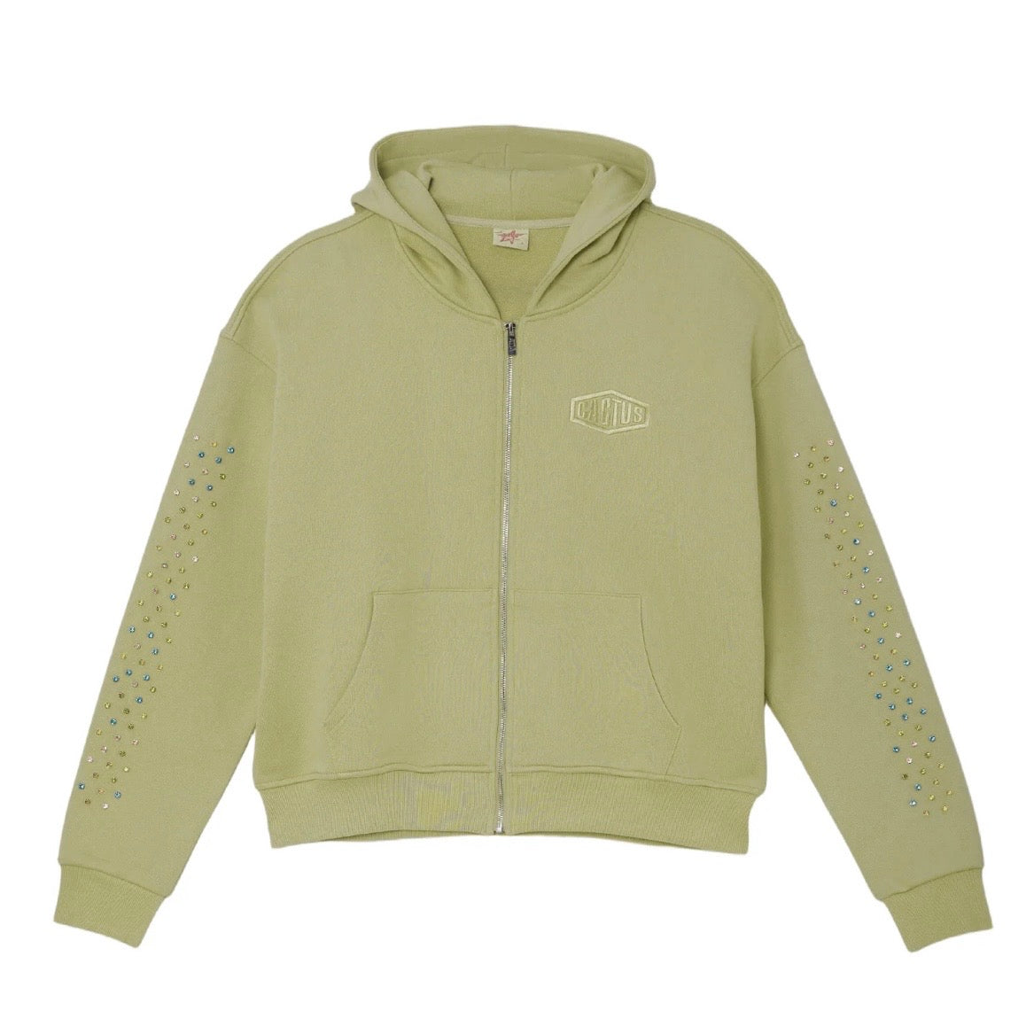 AZVA Sage Crystal Cactus Zip Hoodie