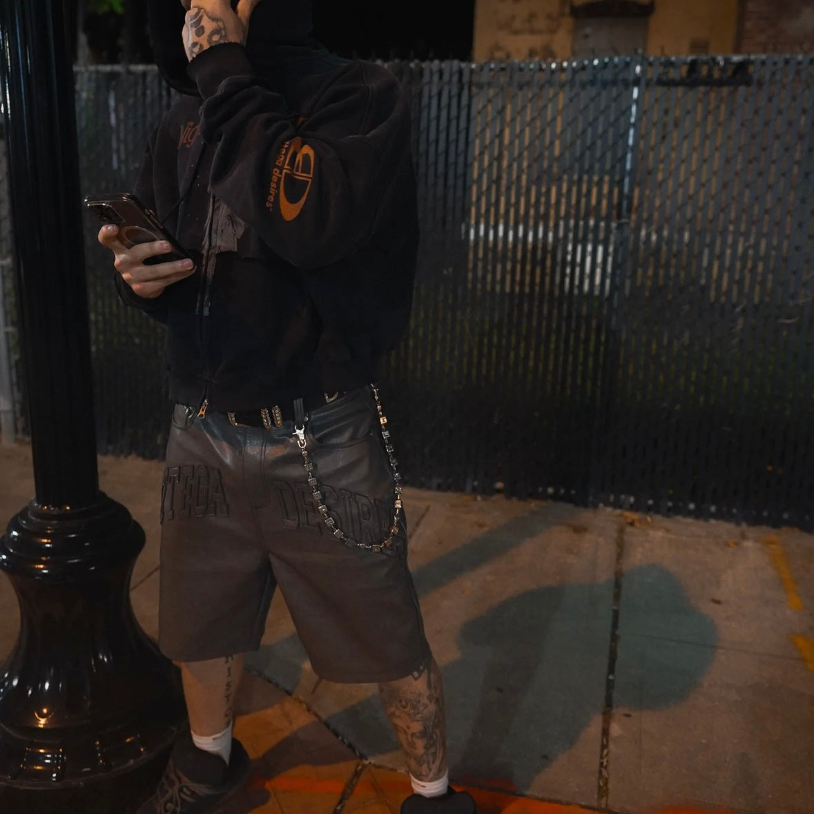Elevate your streetwear game with the Bottega Desires Leather Shorts. These premium shorts combine luxury materials with bold streetwear aesthetics, delivering a statement piece that commands attention.