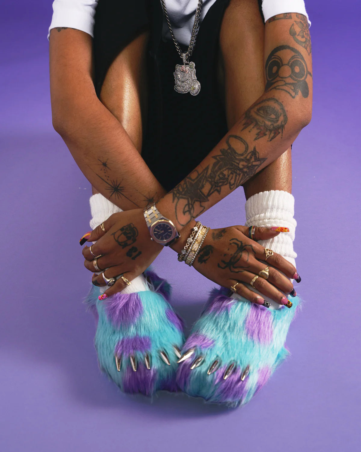 Crafted with high-quality materials and meticulous attention to detail, these mules offer both comfort and standout aesthetics. The monster-inspired design with steel claw accents adds a distinctive, fierce touch perfect for those seeking bold streetwear footwear that commands attention with unique, wild style.