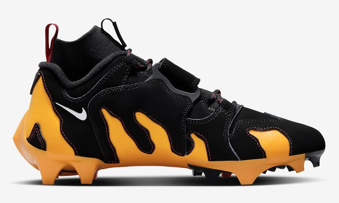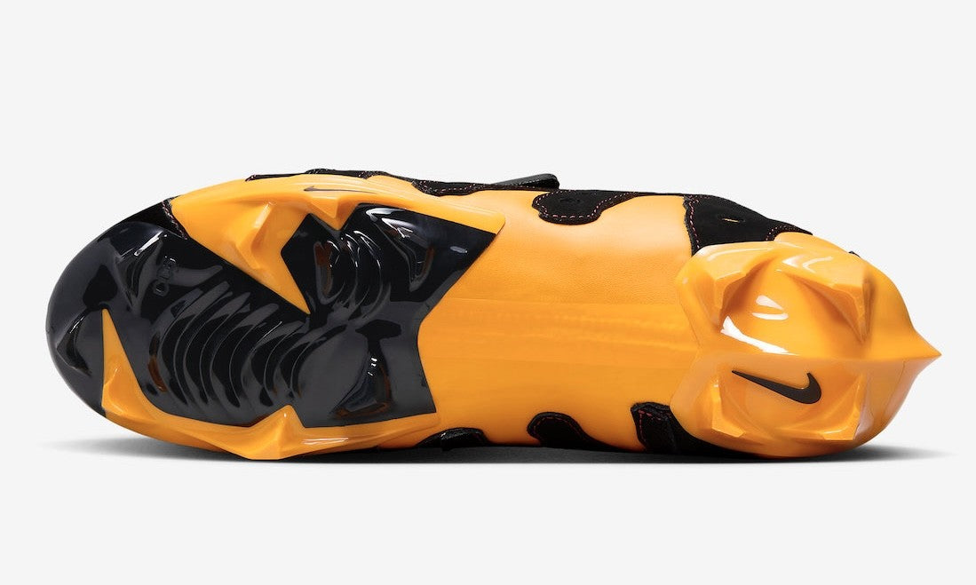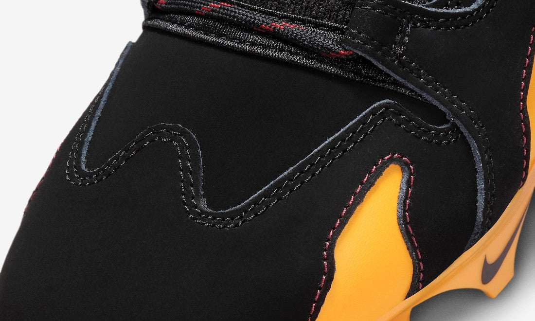 Nike Vapor Edge 360 DT Black Gold Kyler Murray Cleats feature a sleek black upper with standout University Gold claw-like cut-outs, symbolizing Kyler Murray’s dual-sport expertise. Accents of Red and White elevate the design, with mini Swooshes and laces offering an iconic touch to this dynamic cleat.